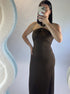 De Jill Dress omhelst je met elegantie in een warme bruintint en lange, aansluitende snit die jouw silhouet flatterend accentueert. De subtiele gouden details geven je look een luxueuze touch. Ideaal voor een avondje uit, een romantisch diner of een speciale gelegenheid waarbij je wilt stralen.