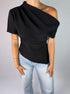 De Loua Top laat je schouders spreken en geeft je een elegante, vrouwelijke uitstraling. De zachte stof valt soepel langs je lichaam, terwijl de subtiele plooien je silhouet flatteren. Perfect voor een avond uit, maar ook moeiteloos te combineren met jeans of een rok voor een casual chic look.